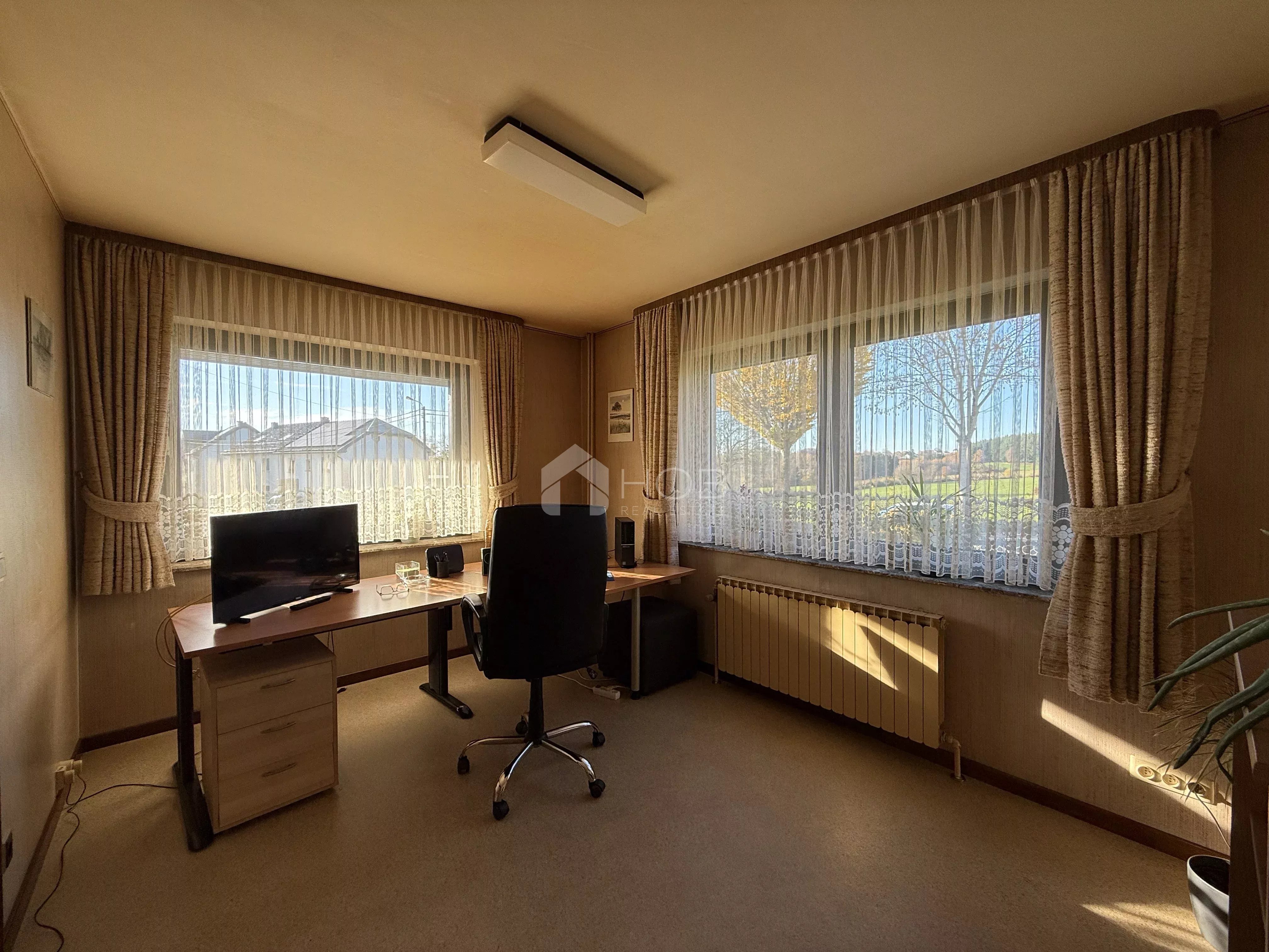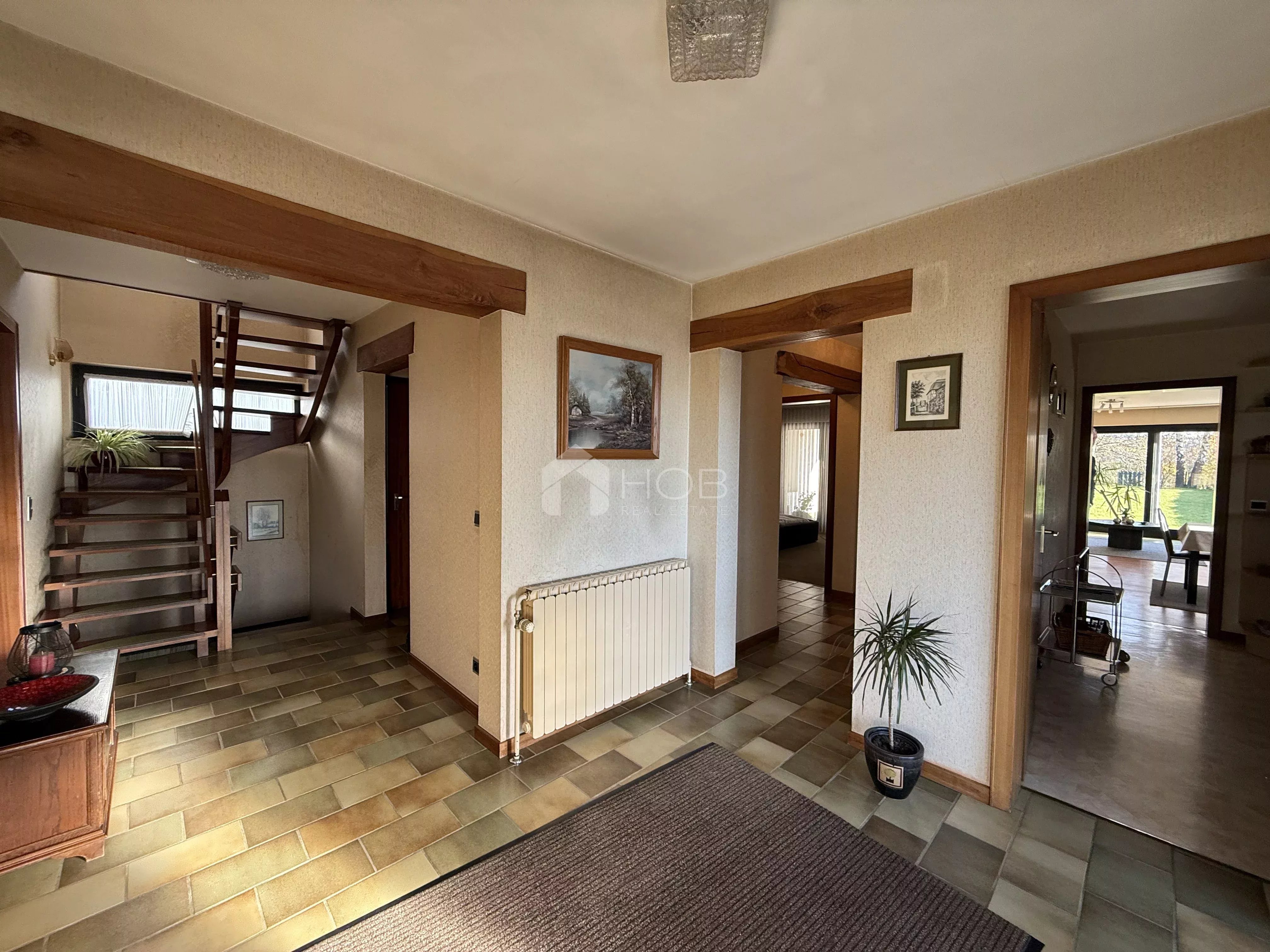 Cette maison individuelle spacieuse d’une surface habitable de 195 m² – idéale pour les familles ou tous ceux qui apprécient beaucoup d’espace et un emplacement calme mais bien desservi.