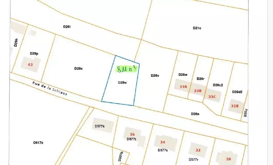 À vendre : terrain à bâtir plat d’une superficie de 811 m² à Autelhaut (Rue de la Schlaus), à seulement +/- 5 km de la frontière luxembourgeoise. L’emplacement séduit par son quartier résidentiel calme et soigné et sa belle vue dégagée, qui procure une sensation de bien-être et de proximité avec la nature.