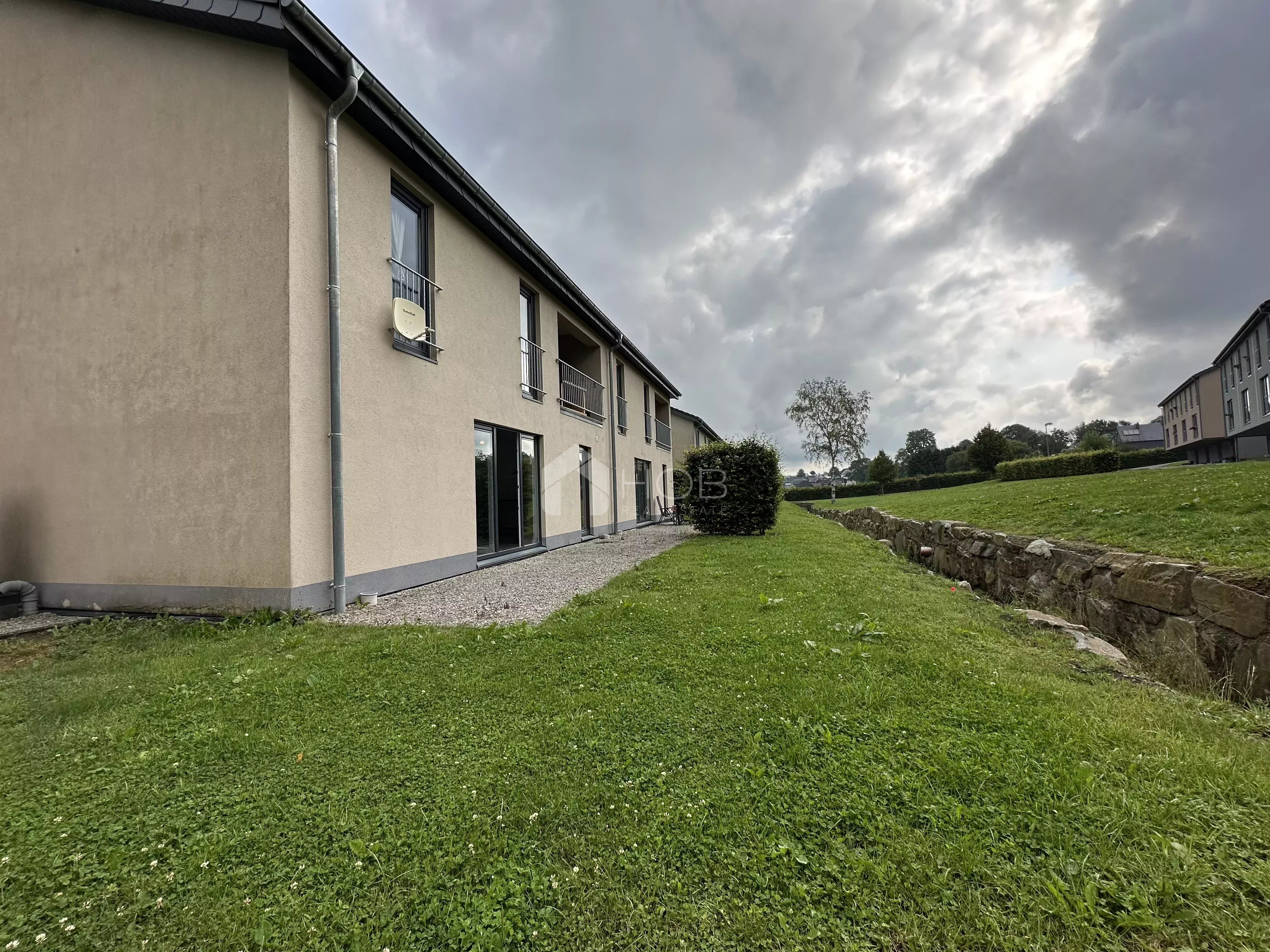 Diese charmante Wohnung befindet sich im Erdgeschoss einer weitläufigen, begrünten Liegenschaft in unmittelbarer Nähe des Zentrums von Büllingen. Die südöstliche Ausrichtung sorgt für viel Tageslicht und angenehme Wohnatmosphäre.