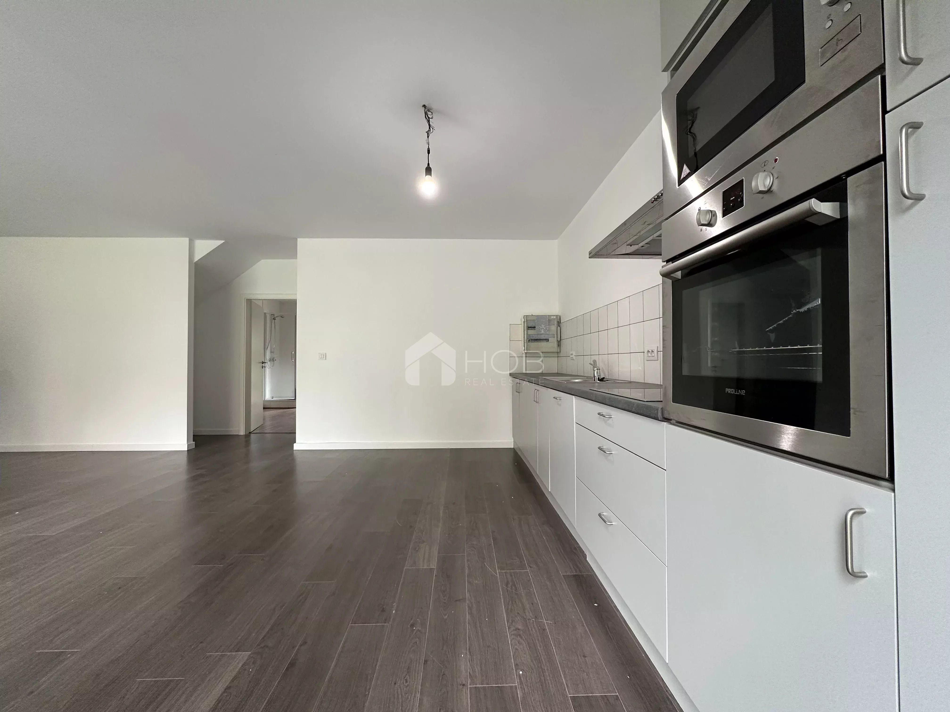 Die Wohnfläche von 43,71 m² umfasst eine offene, vollständig ausgestattete Küche, die nahtlos in den Wohnbereich übergeht – mit direktem Zugang zur privaten Terrasse und dem gemeinschaftlichen Garten. Ideal zum Entspannen in ruhiger Umgebung.