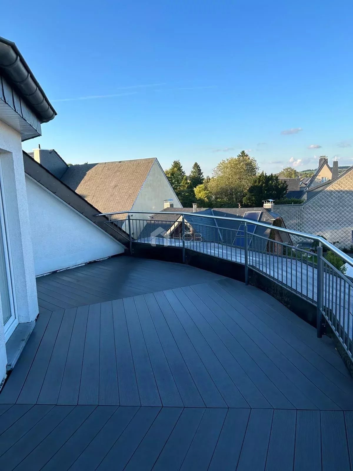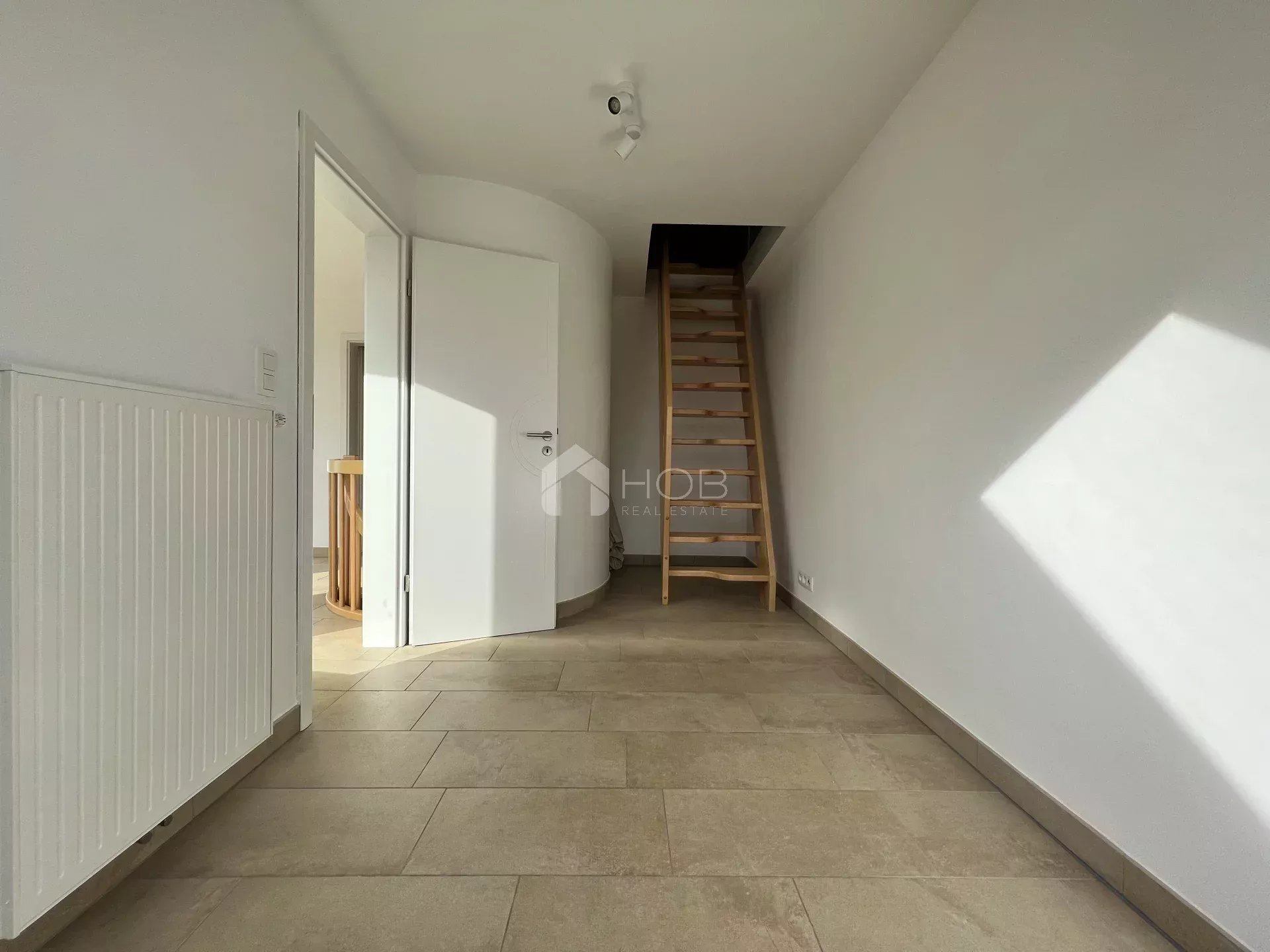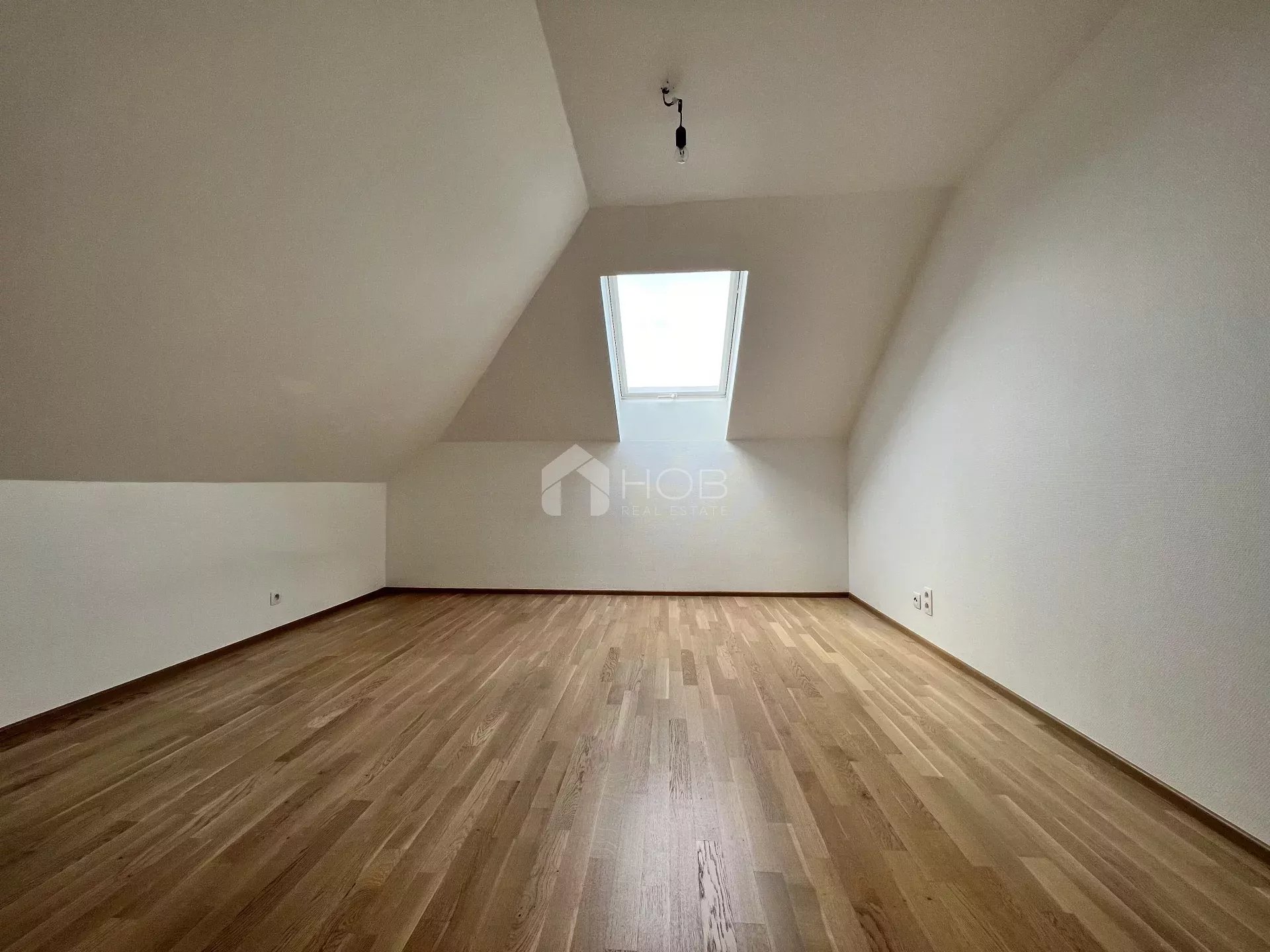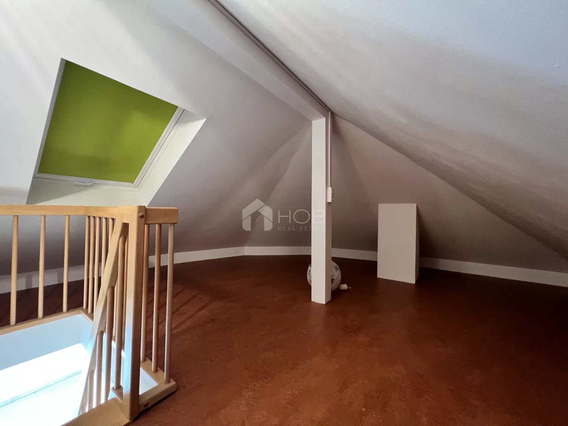 Die Wohnung besteht aus einer Eingangshalle, einem Wohnzimmer mit offener Küche, einer separaten Toilette, einem Abstellraum, zwei Schlafzimmern, einem Badezimmer, einer Terrasse und einem ausgebauten Dachboden.