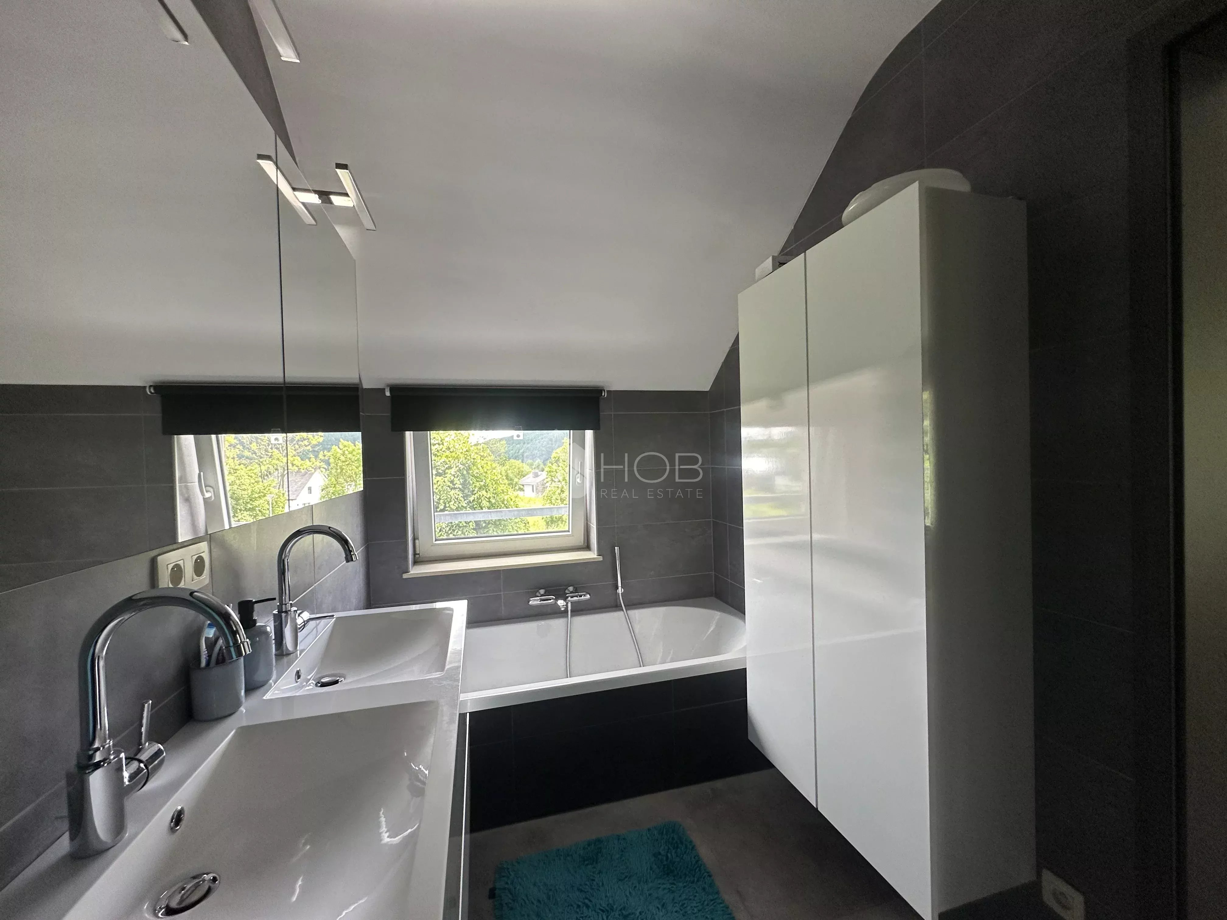 Te koop is een modern appartement in Malmedy, dat indruk maakt door zijn rustige ligging op het platteland en de nabijheid van de stad. Deze flat is gebouwd in 2017, bevindt zich op de 3e verdieping van een goed onderhouden woongebouw en biedt een woonoppervlakte van ongeveer 86 m².