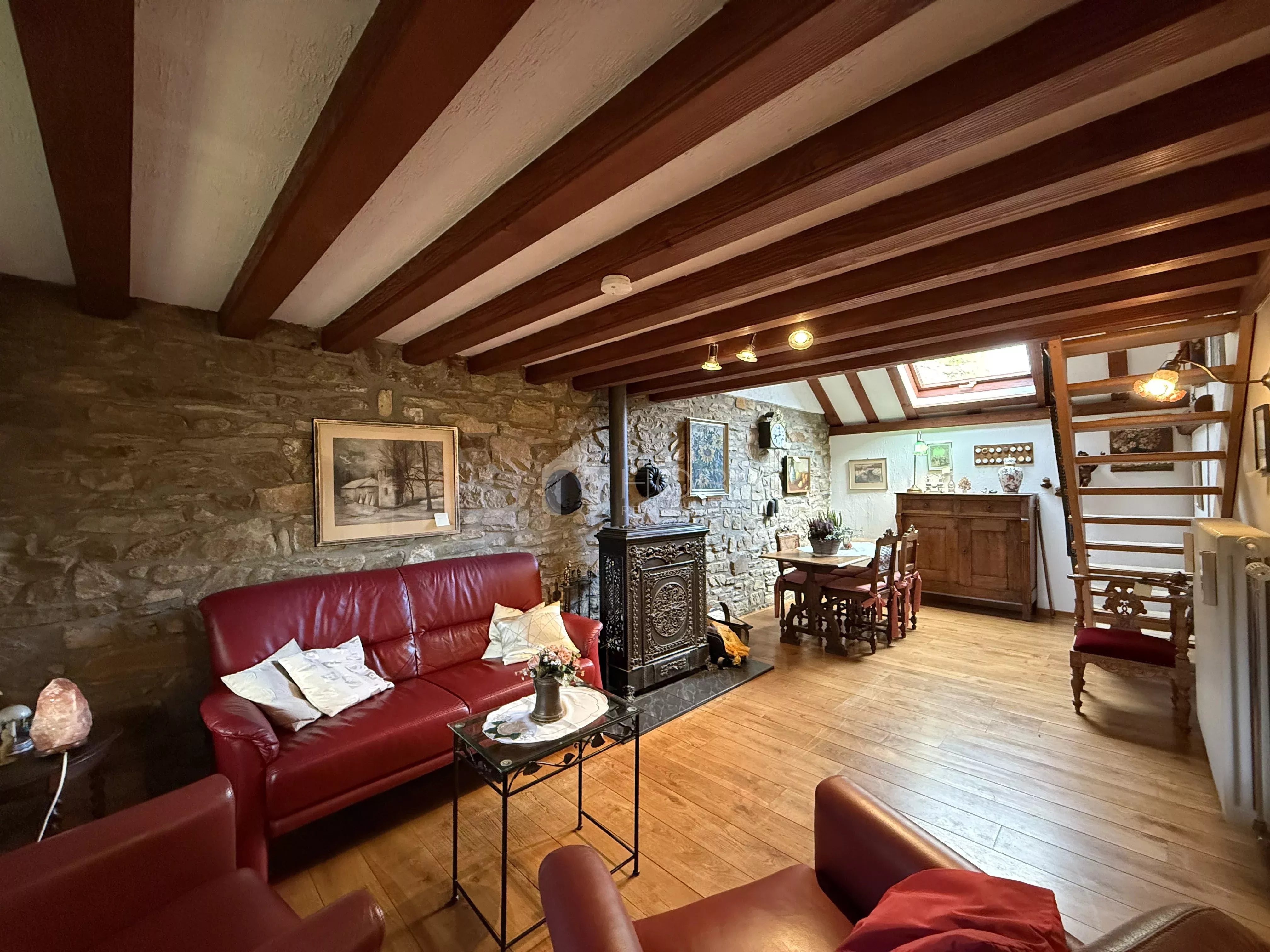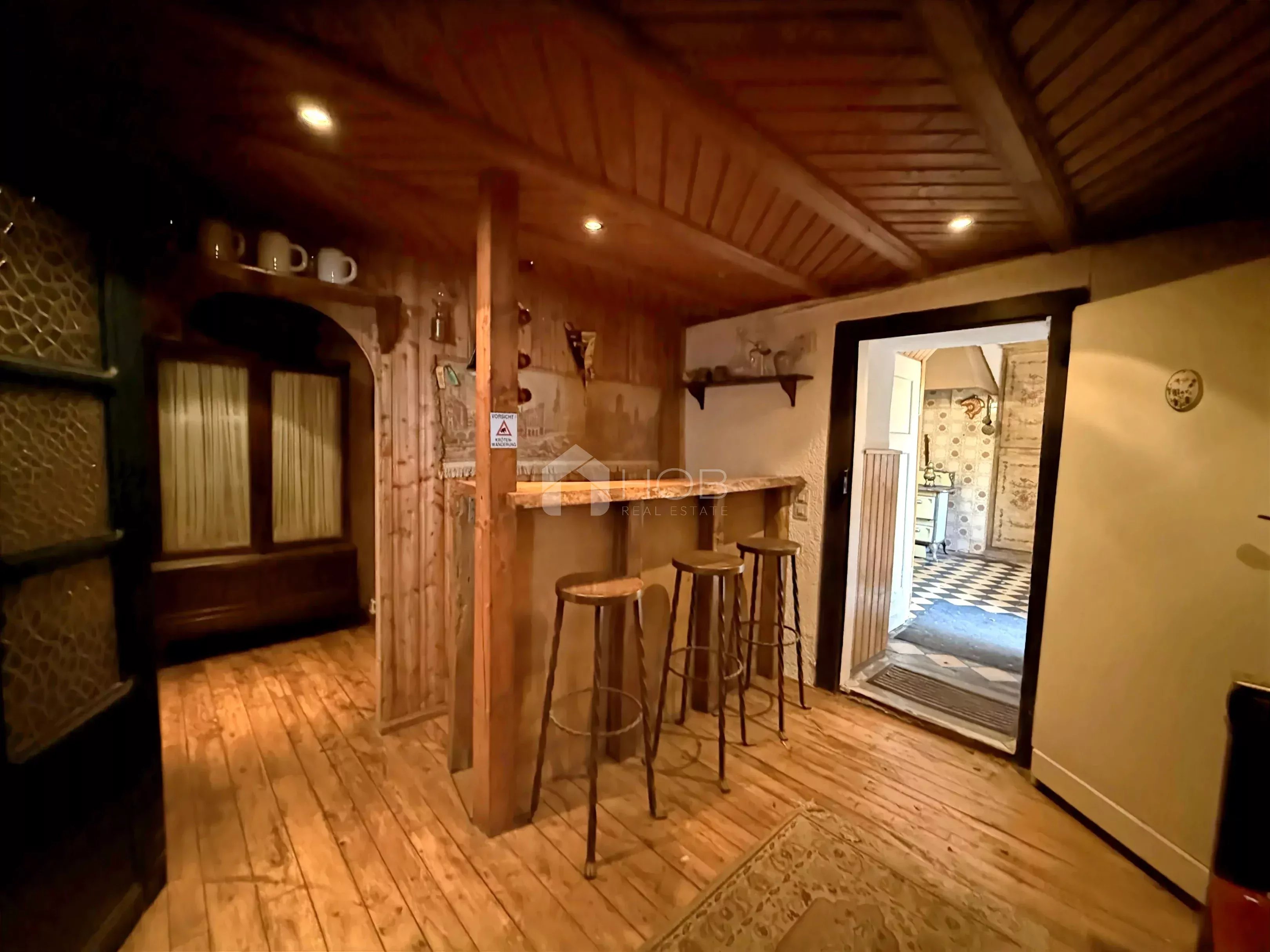 De gezellige woonkamer met houtkachel nodigt uit tot gezellige avonden, terwijl de rustieke kleine bar in het huis zorgt voor gezellige uurtjes. De klassieke luiken onderstrepen het authentieke landhuis karakter en geven het pand een bijzondere charme.