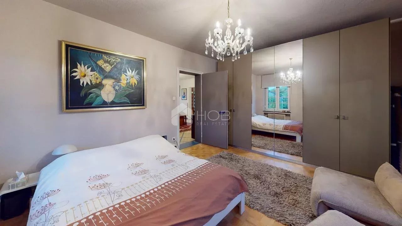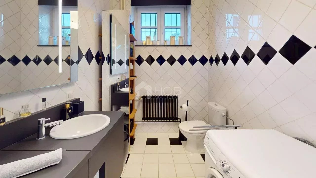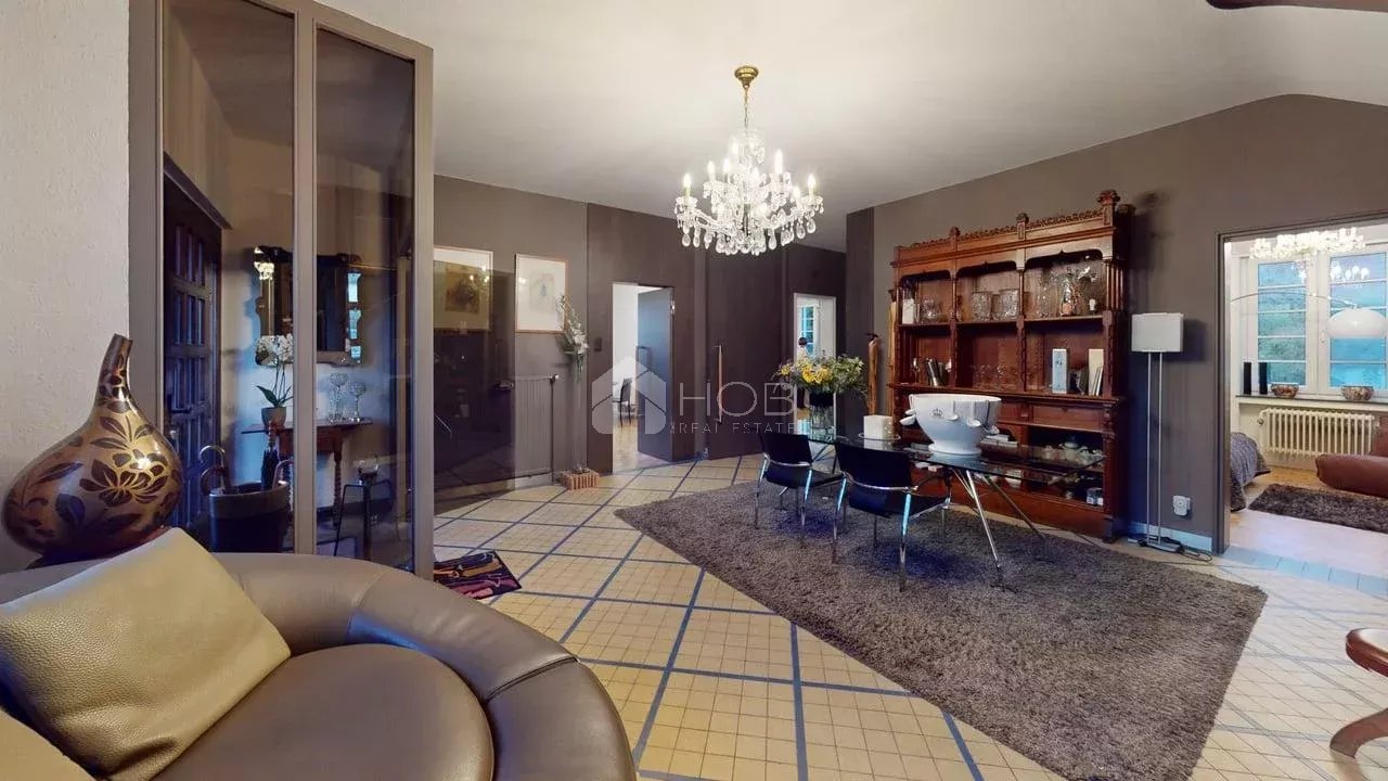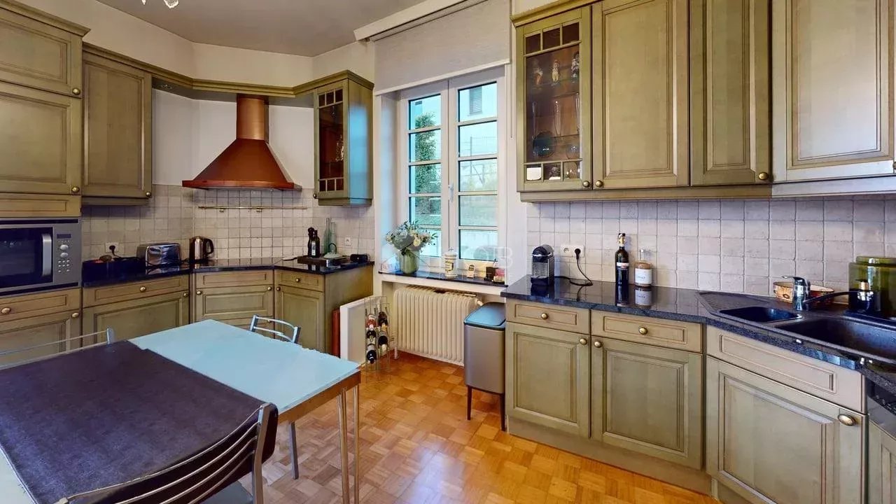 Bij binnenkomst maakt de lichte, uitnodigende entree met stijlvolle tegelvloeren, die harmonieus doorlopen in de echte houten parketvloeren van de woonkamers en slaapkamers, meteen indruk. Moderne houten en glazen deuren, hoogwaardige materialen en een stijlvolle combinatie van traditie en eigentijds design geven elke kamer een bijzondere sfeer.