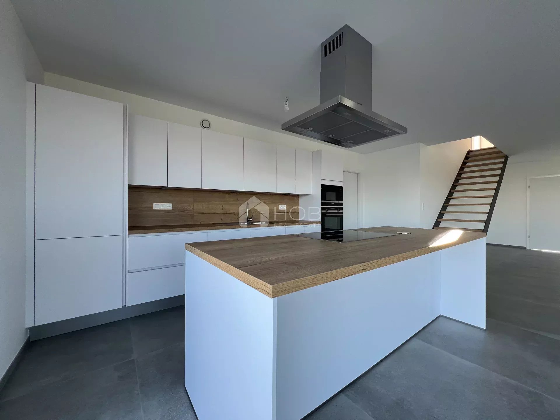 De hoogwaardige inrichting omvat een volledig uitgeruste keuken met een stijlvol kookeiland, twee moderne badkamers en vier slaapkamers, waarvan één met een ruime kleedruimte.